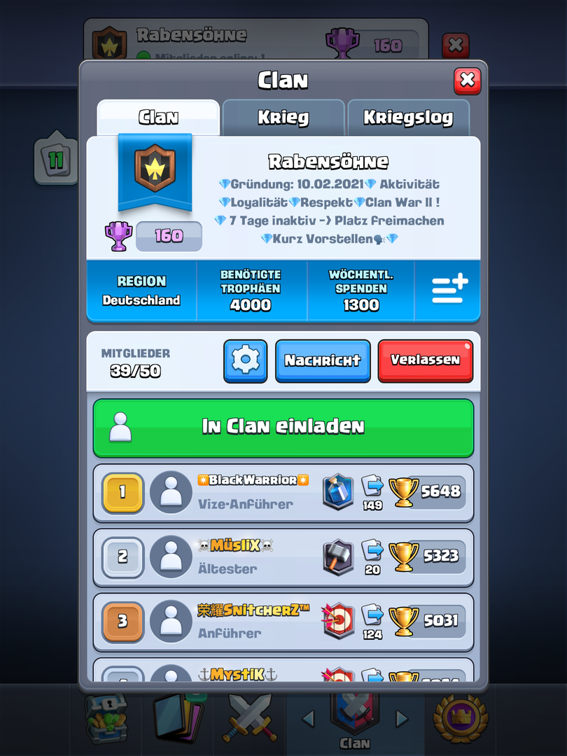 Mein Clan sucht aktive und loyale Mitglieder,die Spaß am Spiel haben!