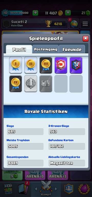 Seit einer etwas längeren CR Pause suche ich wieder einen Clan! Ich spiele schon seit über 4 Jahren und mein Trophäenrekord ist 5005.