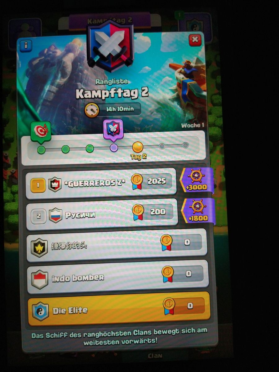 unser Clan hat jetzt den ersten Kampftag hinter sich gebracht.