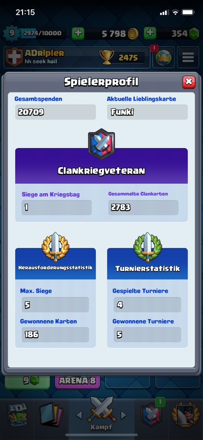 Magieschütze, Infernodrache . Zu spielen,.. weil das sind ja eigentlich karten die man erst in viel höheren Arenen bekommt , Man kann ja aus den höheren Arenen nicht Absteigen ,.. Und ist es ebenfalls möglich das man bei 4 Tunieren teilgenommen hat aber 5 gewonnen hat?