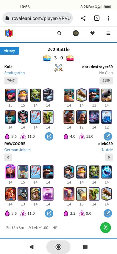 Ein Freund von mir hat gestern ein Duo Kampf mit Einem Freund gemacht, wobei allerdings nicht das Tunierlevel (11) genutzt wurde, sondern das eigene Kartenlevel.