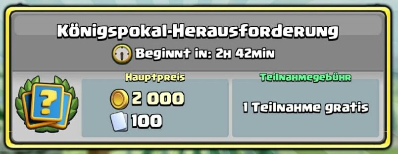 - Zu gewinnen gibt es Karten-Truhen und Goldmünzen die sich nach den erfolgreichen Herausforderungen richtet