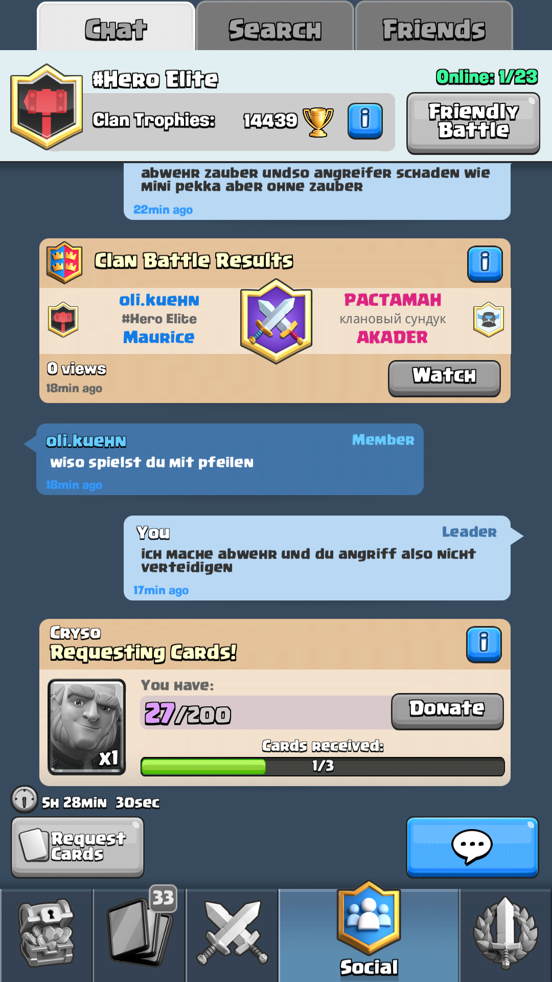 Alles anzeigenIch bin erst kurz am CR zocken und spiele in einem kleinen Clan (3 Mitglieder) Verstehe ich es richtig, dass man für die Clantruhe nur in einem vorgegebenen Zeitraum kämpfen kann?
