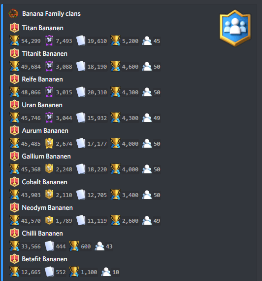 dass Du eine Clan-Familie hast, die fest in der Clash-Royale-Welt verwurzelt ist.