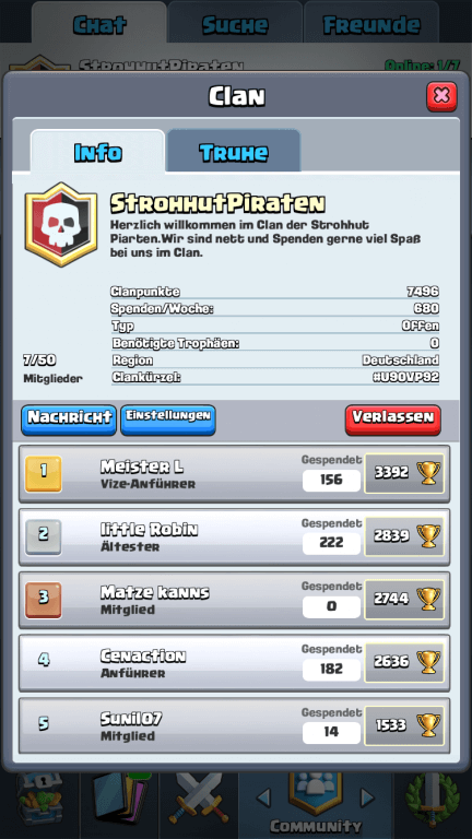 wir suchen noch aktive Spieler um 10 Clan Truhen zu erreichen.