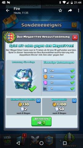Jetzt bin ich mal gespannt.. Wobei die 10 gems sind fair um es zu wiederholen... Aber Àrgerlich wenn man nicht weiter als 4 Siege kommt ![]()