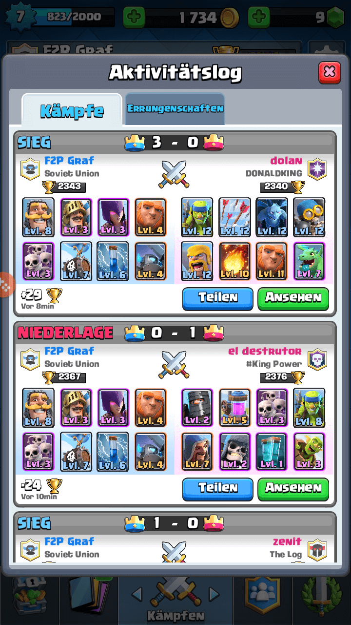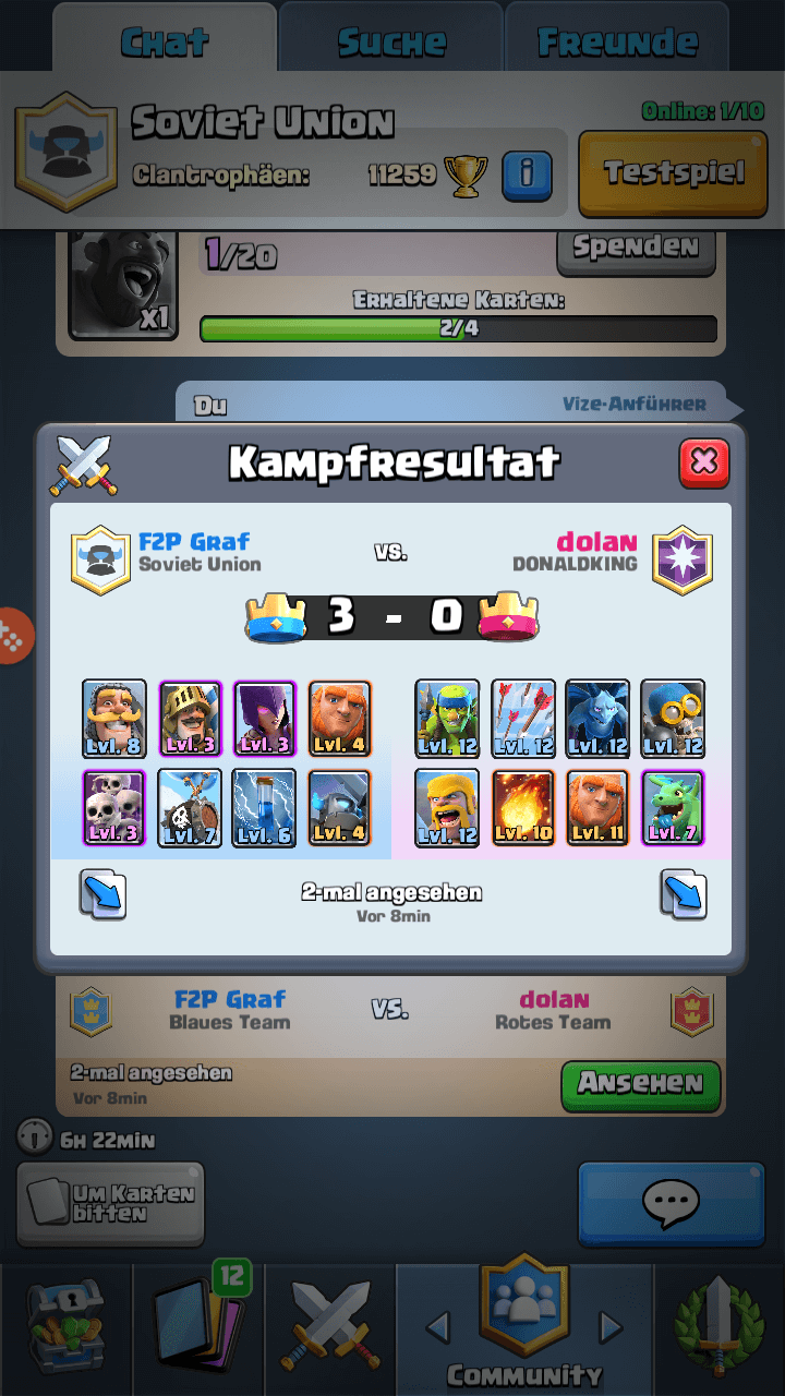 #6 Hatte ich gestern auch mit meinem 2. Account. War bei ca. 3900 und spiele gg einen 12 mit Poki Rekord 4900. War schon cool epische 7 er, maxed Feuerball... usw... aber egal.. Mund abputzen.. weitermachen... sowas gibt es immer zu Zeiten wenn manche Clans auf Teufel komm raus noch die 10 er Clantruhe machen wollen.. oder irgendwelche Spieler 300 Kronen o mehr am WE machen wollen....