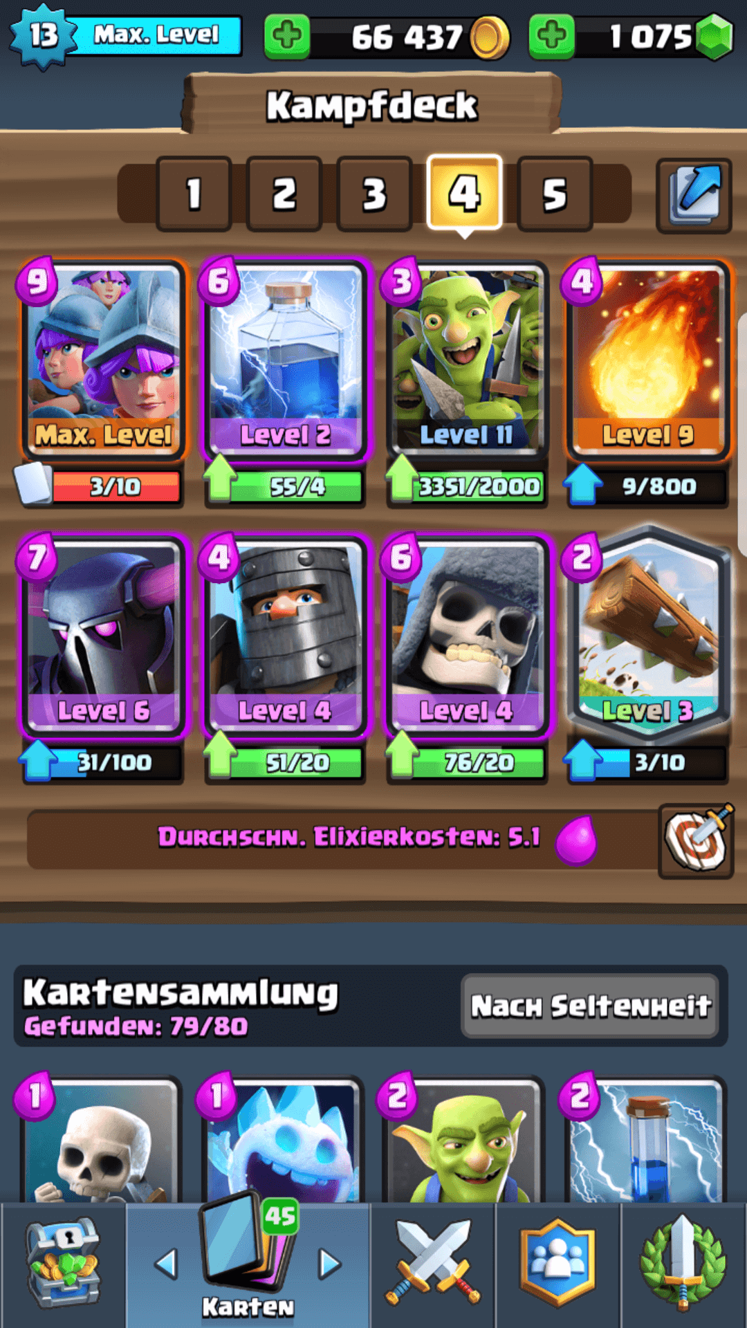 Im Clan wurde ich auch drauf hingewiesen. Hab den bei 54/4. Ich habe mich auch die ganze Zeit gewundert, warum der so wenig Schaden macht bzw der gegnerische Infernodrache noch so viel Leben hat.