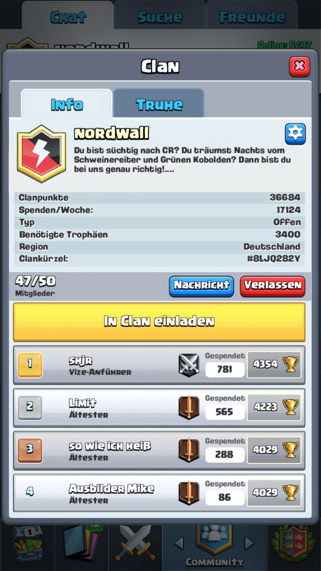 In Clan 2 und 3 sind entsprechend Plätze frei....Falls ihr alle In einen Clan wollt, einfach melden...dann organisieren wir das schon irgendwie💪 oder man verteilt sich entsprechend auf die Clans und nutzt unsere LINE und DISCORD Angebote, um in Kontakt zu bleiben und gemeinsam zu kämpfen...Ihr habt die Qual der Wahl😁