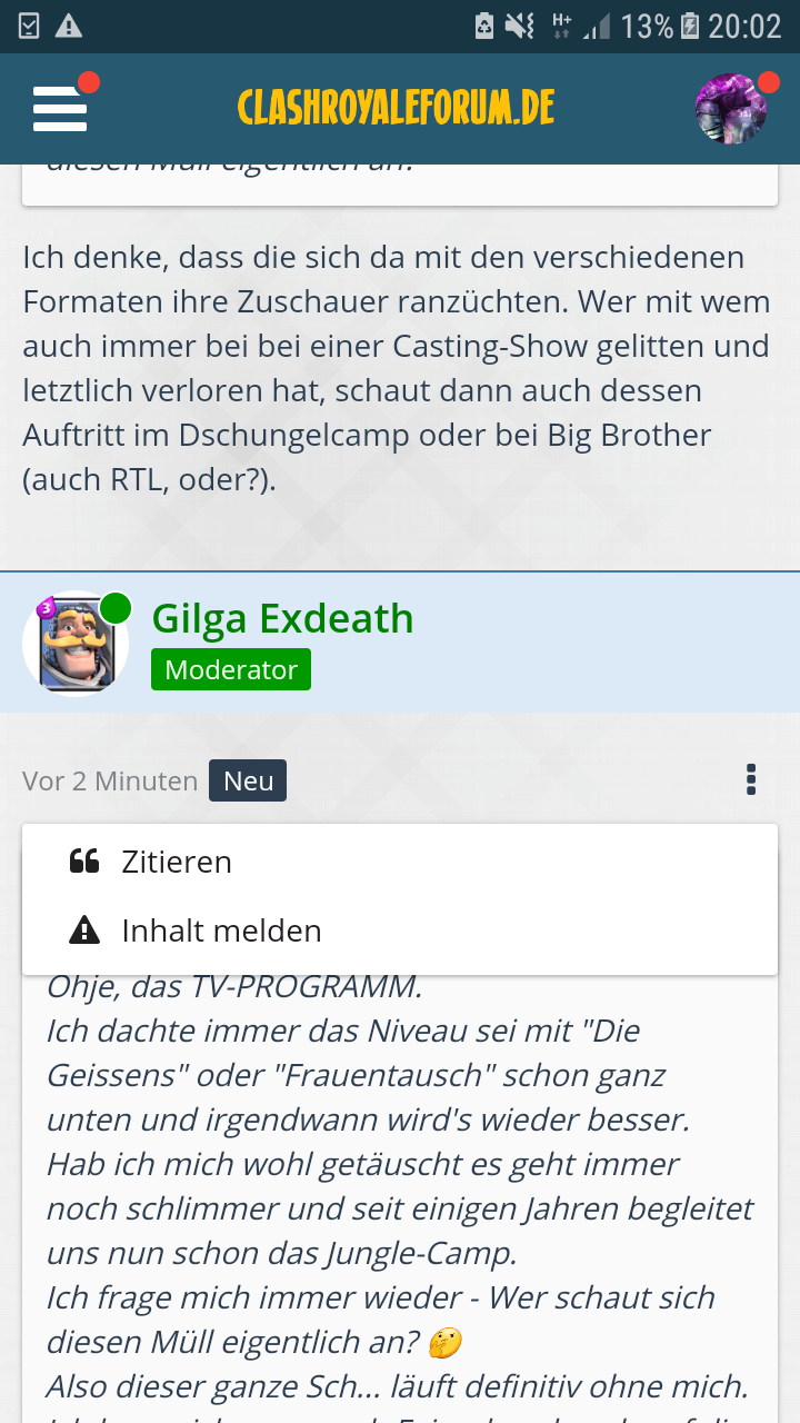 Ich dachte immer das Niveau sei mit "Die Geissens" oder "Frauentausch" schon ganz unten und irgendwann wird's wieder besser. Hab ich mich wohl getäuscht es geht immer noch schlimmer und seit einigen Jahren begleitet uns nun schon das Jungle-Camp.