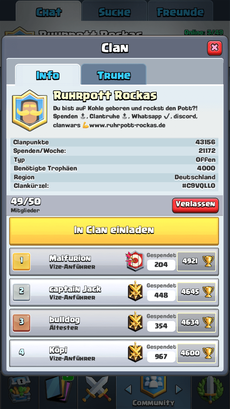 Ich suche einen Clan mit Familiären Umgang gerne auch Discord Gruppe oder sonstiges, Ich dete außerdem gerne Aufstiegs Möglichkeiten haben und gerne Sachen mit Managen da ich sehr aktiv und engagiert bin.