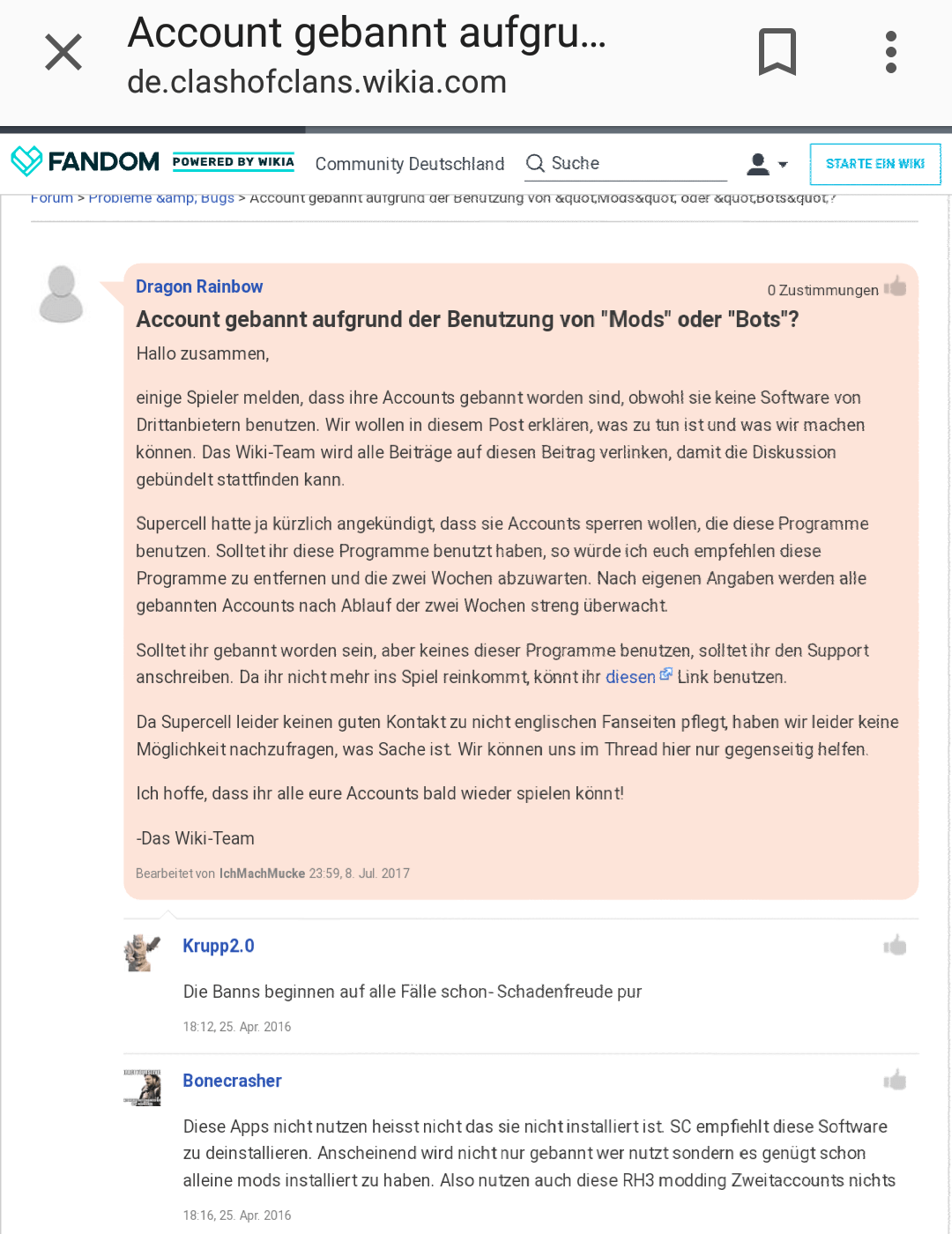 Ich spiele kein CR. mehr. Schon eher CoC. Da alles sowieso vorbei ist und ich mich wenig mit CR. befasse, sehe ich keinen Sinn darin, den Support anzuschreiben.