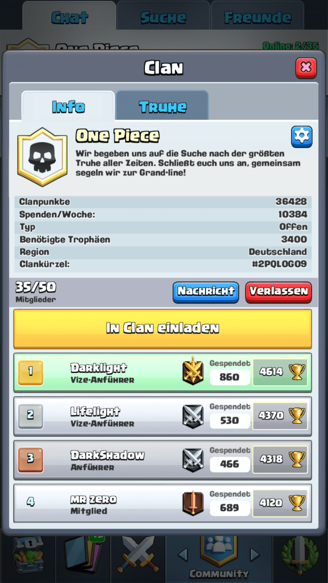 Wir sind ein gutes Team, bekommen die Clantruhe immer voll & zielen auf die top 200 Platzierung in Deutschland:thumbup: