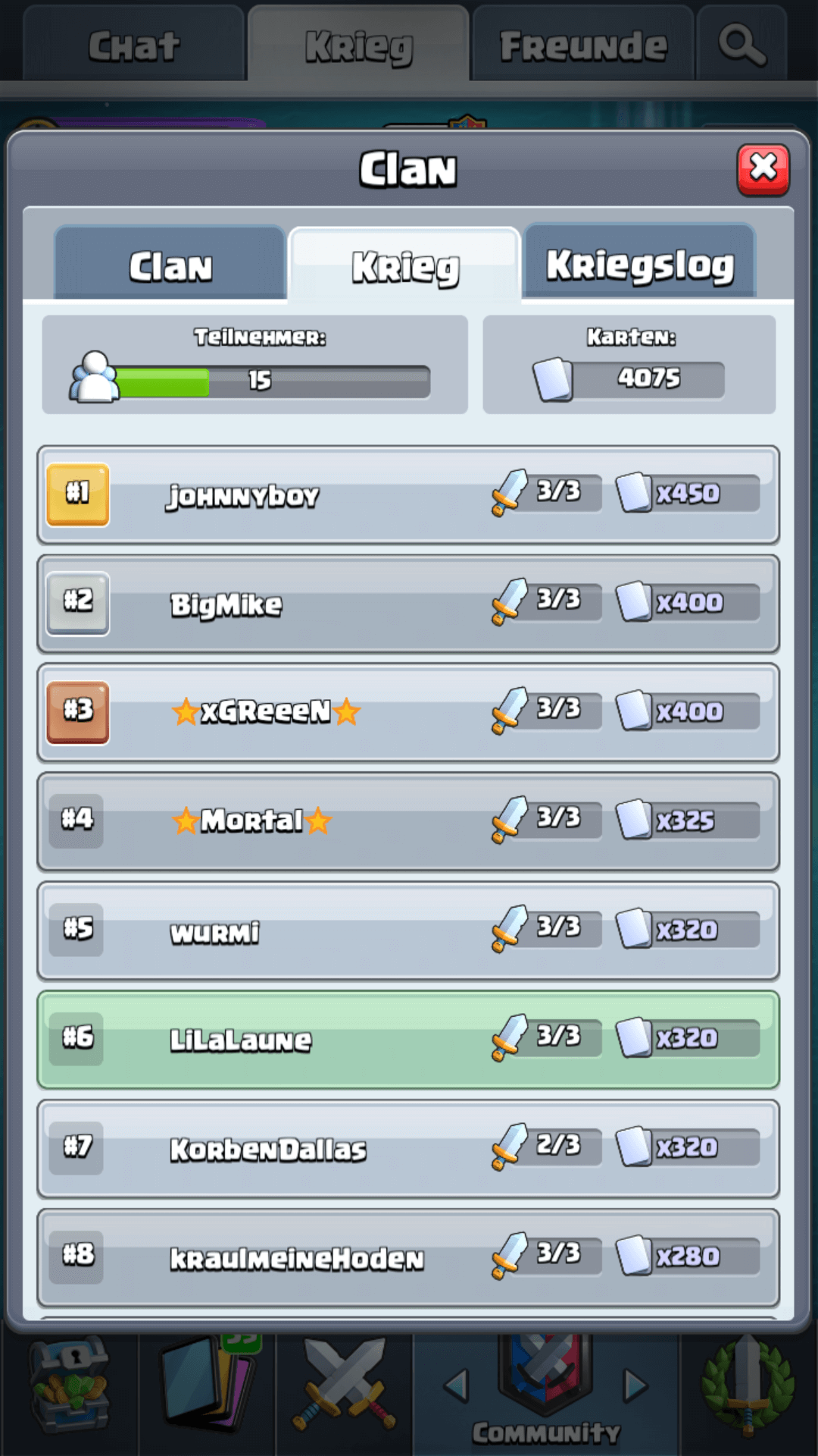 das gibt ordentlich Diskussionsbedarf im Clan, wenn es ums Deck geht. Wenn ich richtig verstanden habe spielt dieses Deck dann auch jeder mit seinem persönlichen Kartenlevel. Erhöht also den Druck auch Karten außerhalb des eigenen Hauptdeck zu Leveln