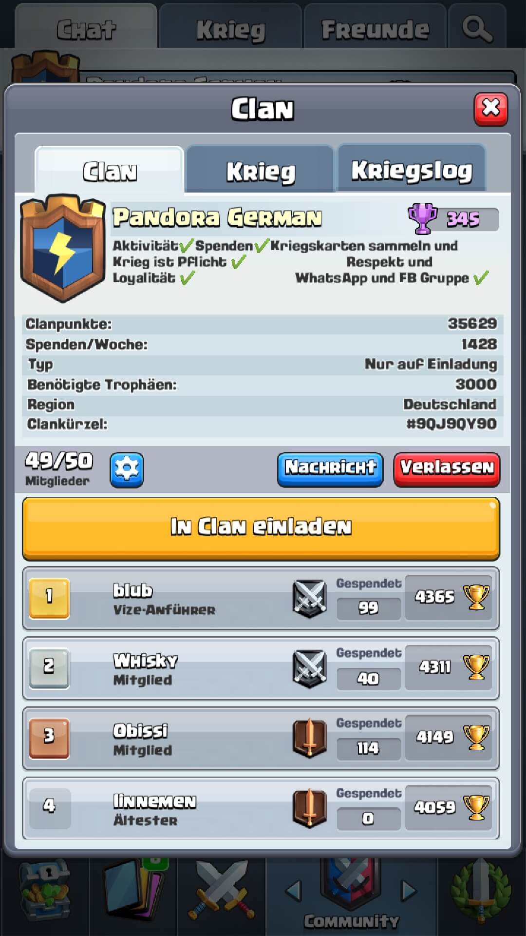 - Viele aktive Clanmitglieder (45-50 Member) | +36.000 Clanpunkte.
