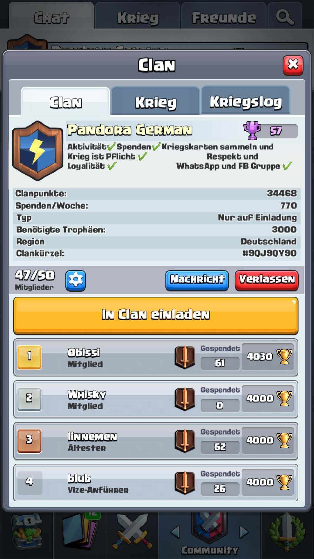 - Viele aktive Clanmitglieder (45-50 Member) | +36.000 Clanpunkte.