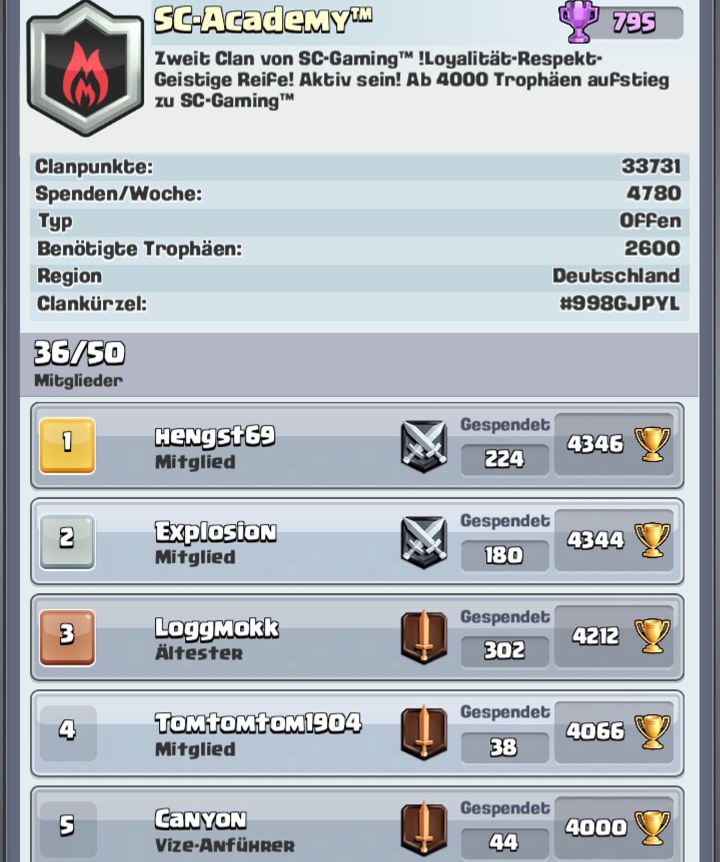 Konnte leider eine sehr lange Weile nicht mehr clashen, da ich auf ein sehr altes und gebrechliches Handy zurückgreifen musste ![]()