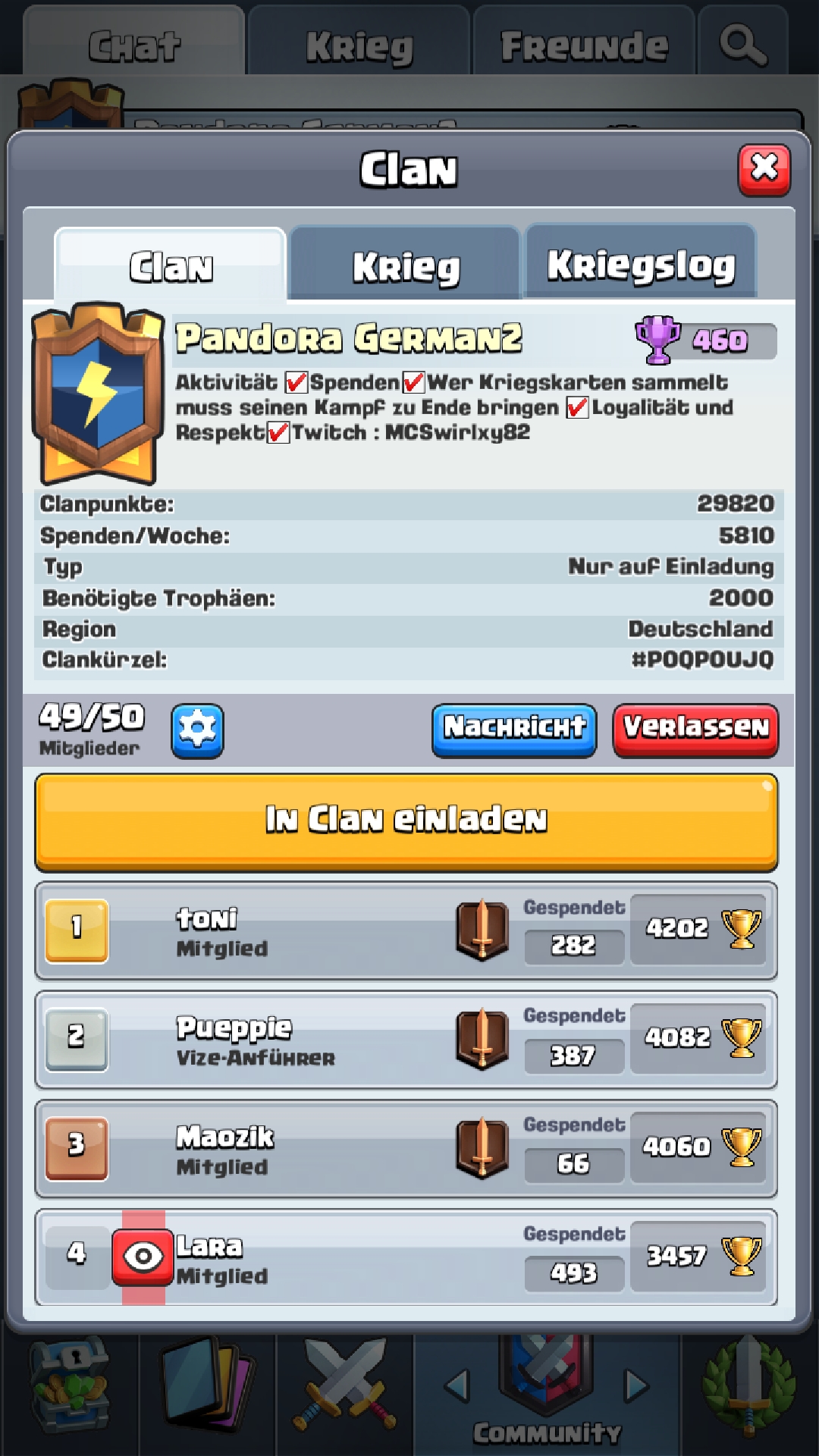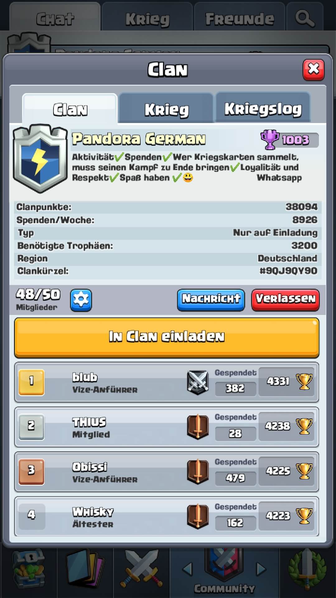 #4 Ü30 Clan sucht Mitglieder🙂Wir sind in unserem Clan alle über 30 .Sind sehr kontaktfreudig und super nett.Bist du aktiv und spielst gerne bei kriegskämpfen mit ,und vllt. Unterhälst du dich auch gerne🤗dann bist du bei uns hier richtig💪Wir sind auf dem Weg in die Goldliga💃