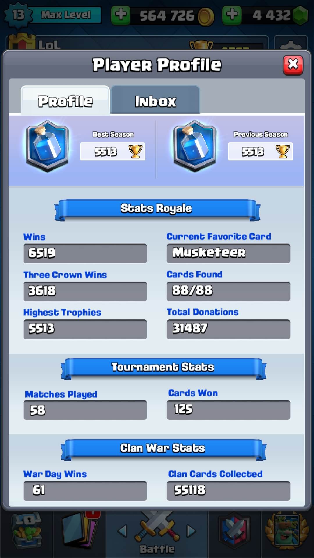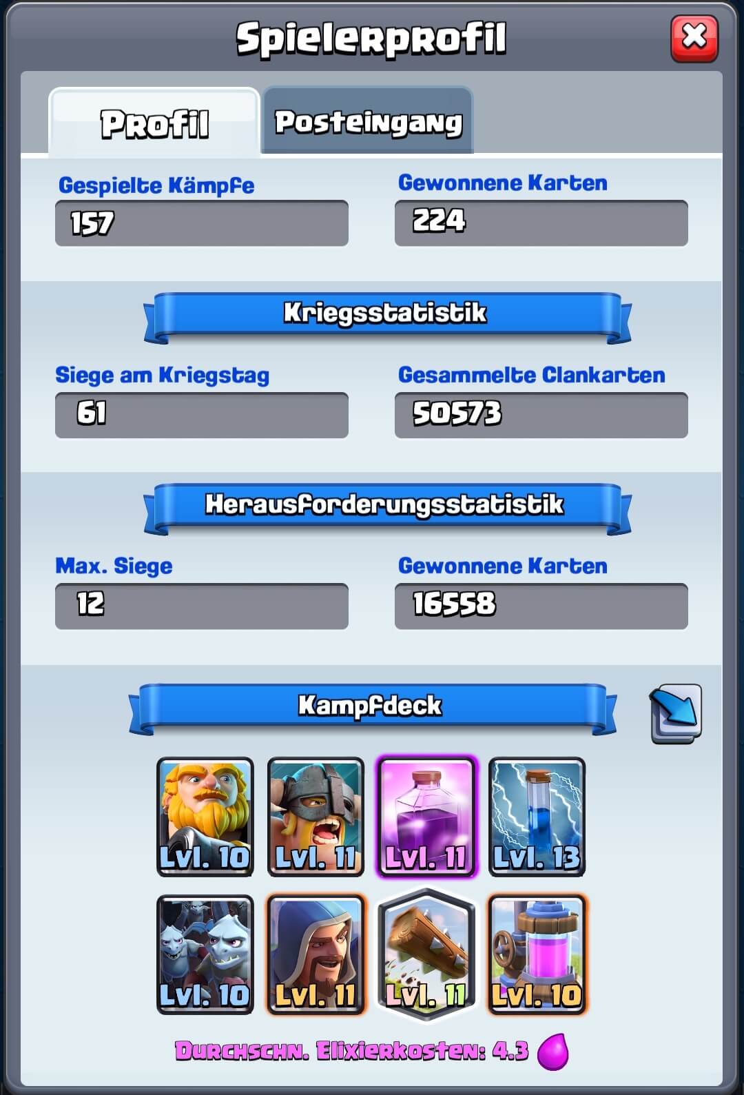 Ich wollte mal Fragen wie schaut es bei euch mit Clan krieg siegen und gesammelten Clankarten aus ?