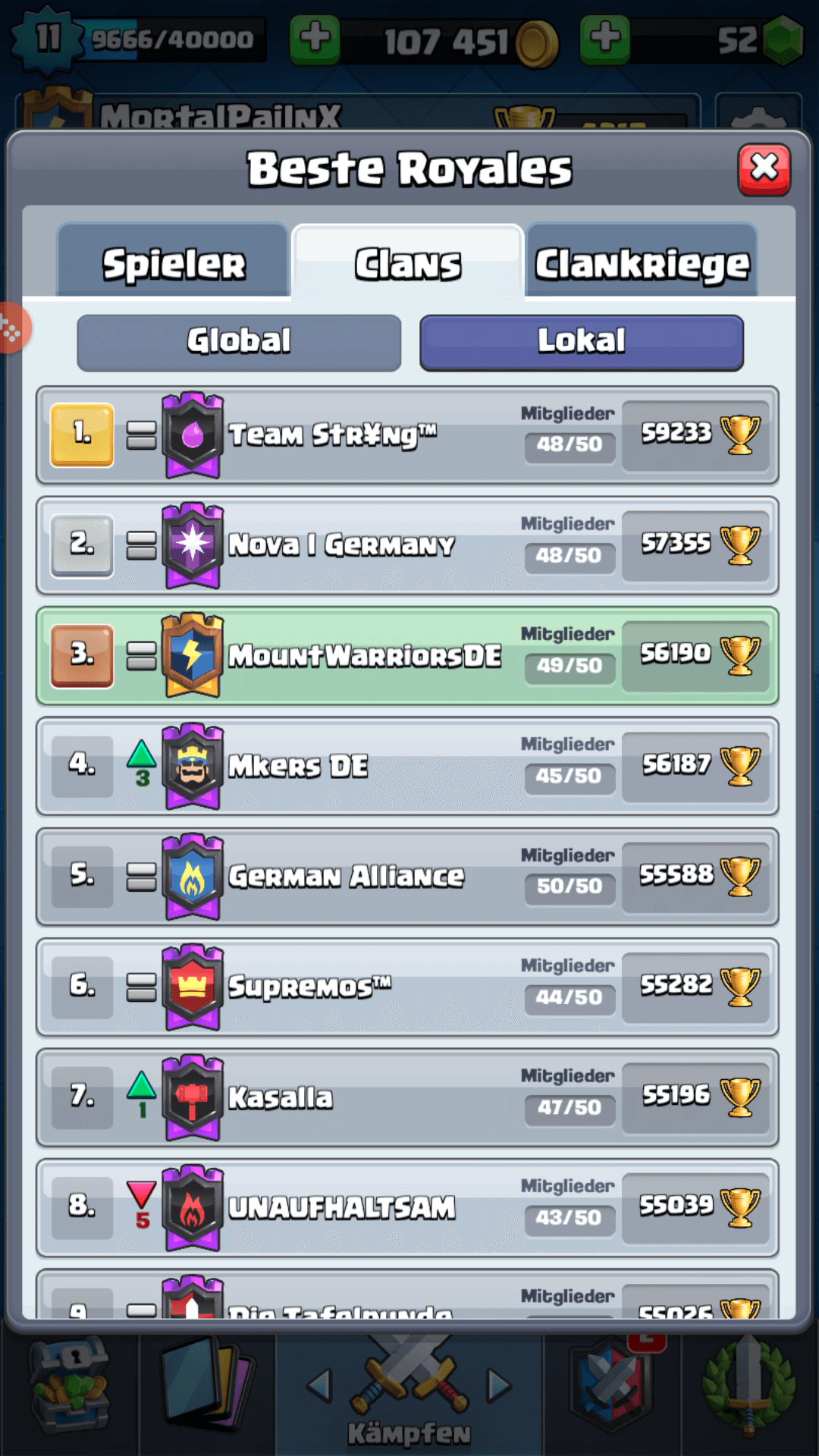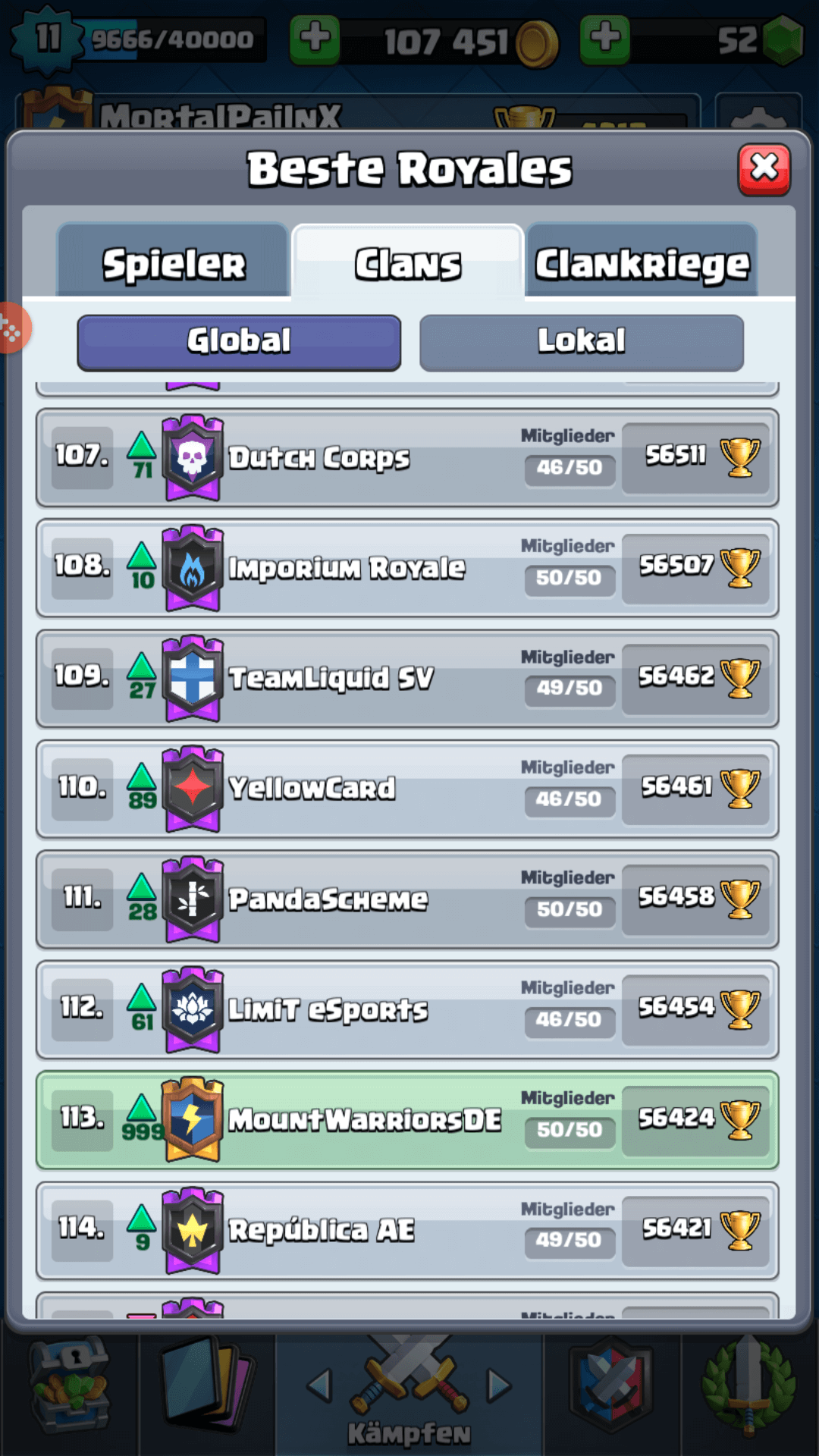 Wir wollen ständig uns untereinander austauschen mit Decks die DU auch noch nie gespielt hast, und vielleicht das andere deck auch mal spielen willst, Clanwar wäre wünschenswert mit zu machen, (wird gerne gesehen )solltest du aber an den Sammelkämpfen Teilnehmen verlangen wir aber das du den Final Kampf auch machen (musst) tust. Übrigens wird das spammen im Chat strikt untersagt sprich z.B (über20 Zeilen) .