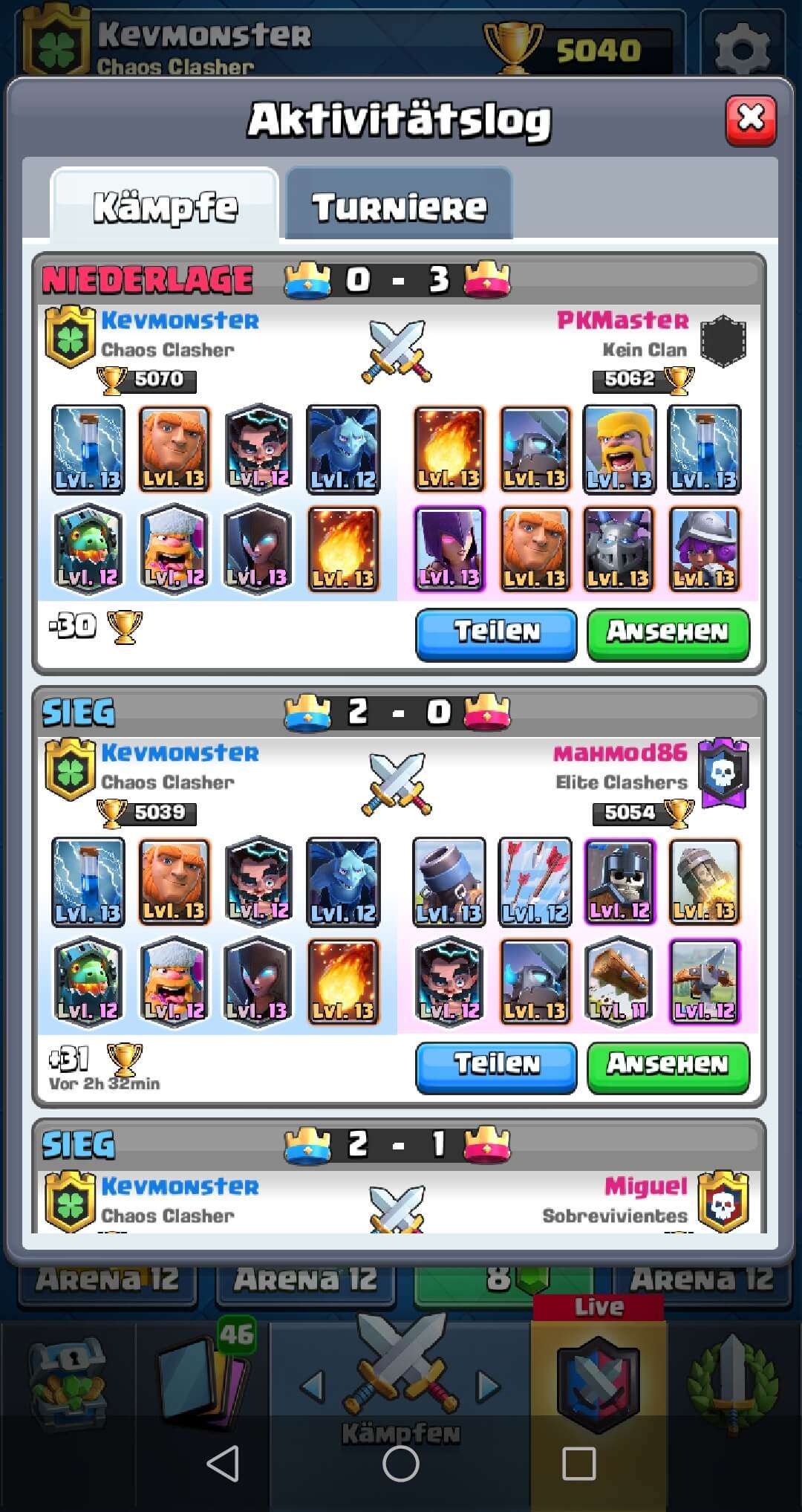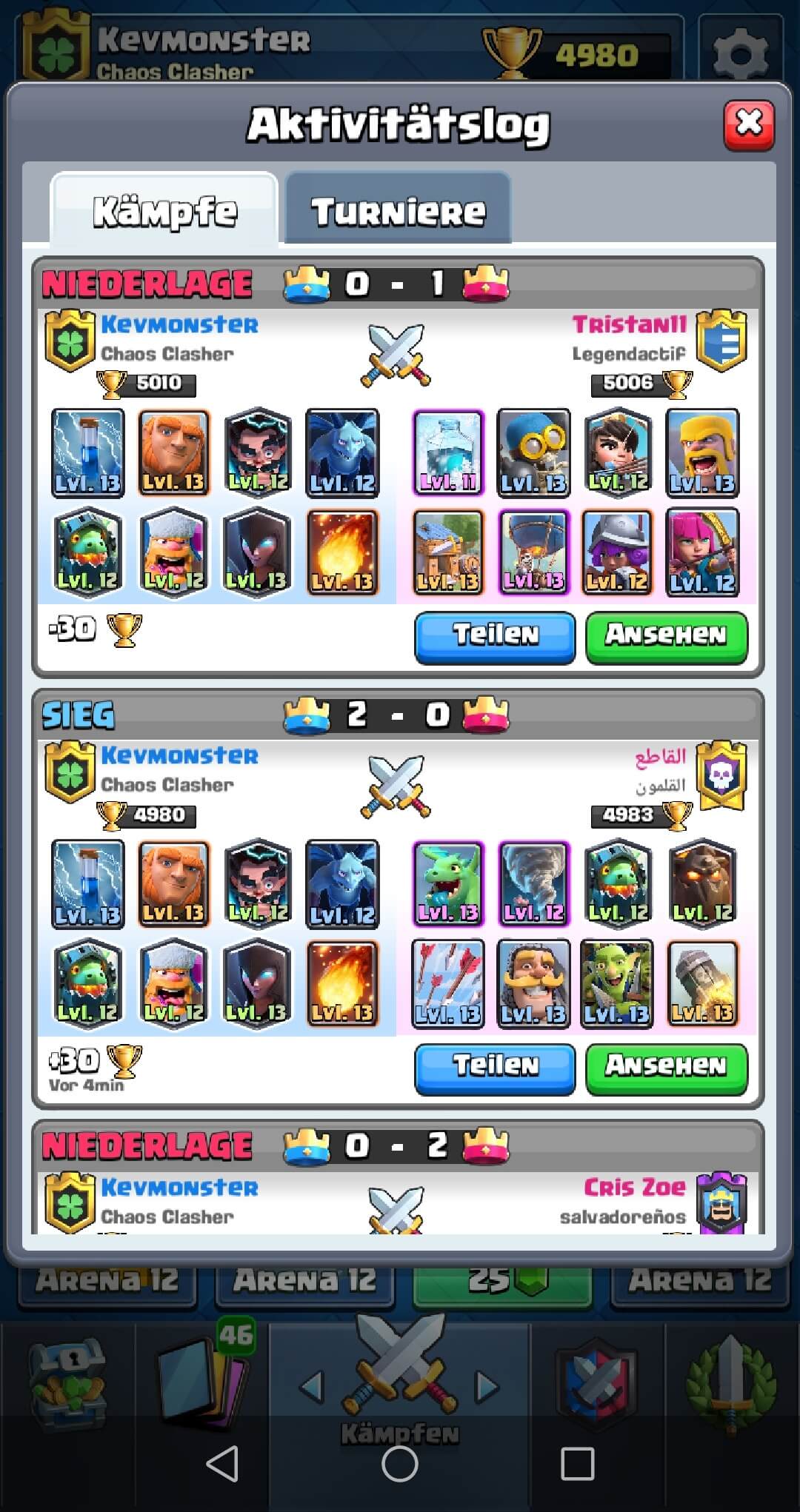 Am liebsten würde ich andere Deck weiterspielen, dass kann ich jedoch nicht, da meine alternativen Kartenlevel zu niedrig sind.