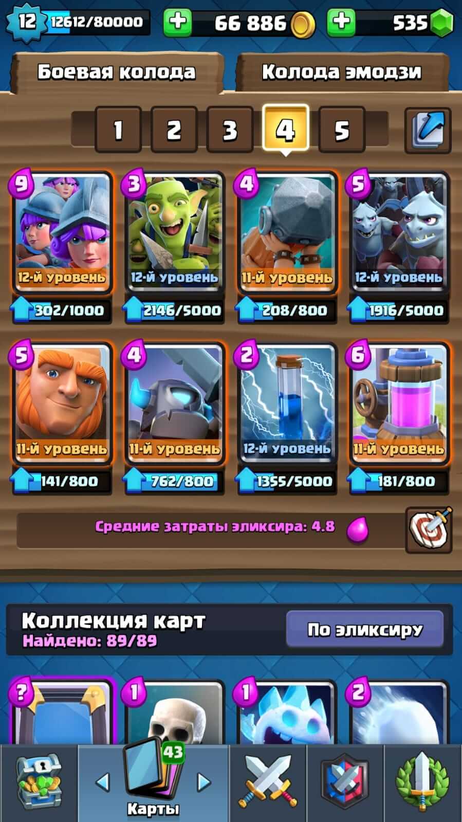 1. Bait-Variante https://link.clashroyale.com/deck/ru?deck=26000028;26000041;26000036;26000022;26000003;26000018;28000008;27000007&id=80RYVRLU2 (6) 55%