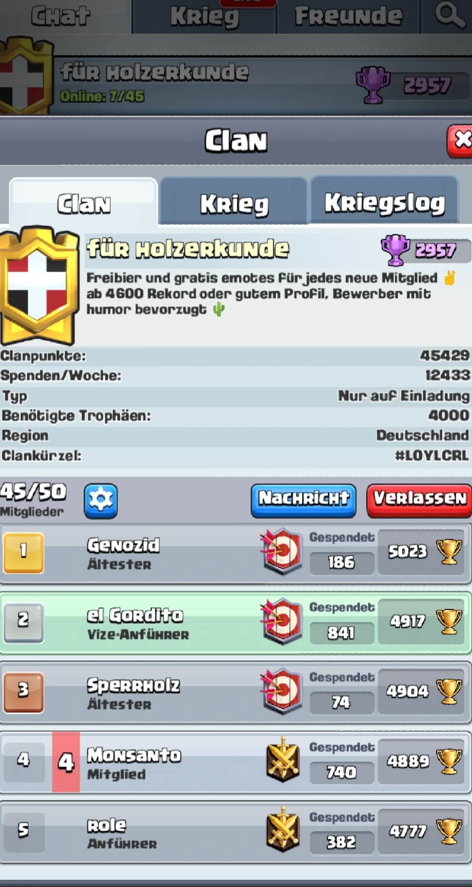 . Wir sind zwar noch etwas weit weg von Legendärer Liga aber ein irrsinnig aktiver Clan