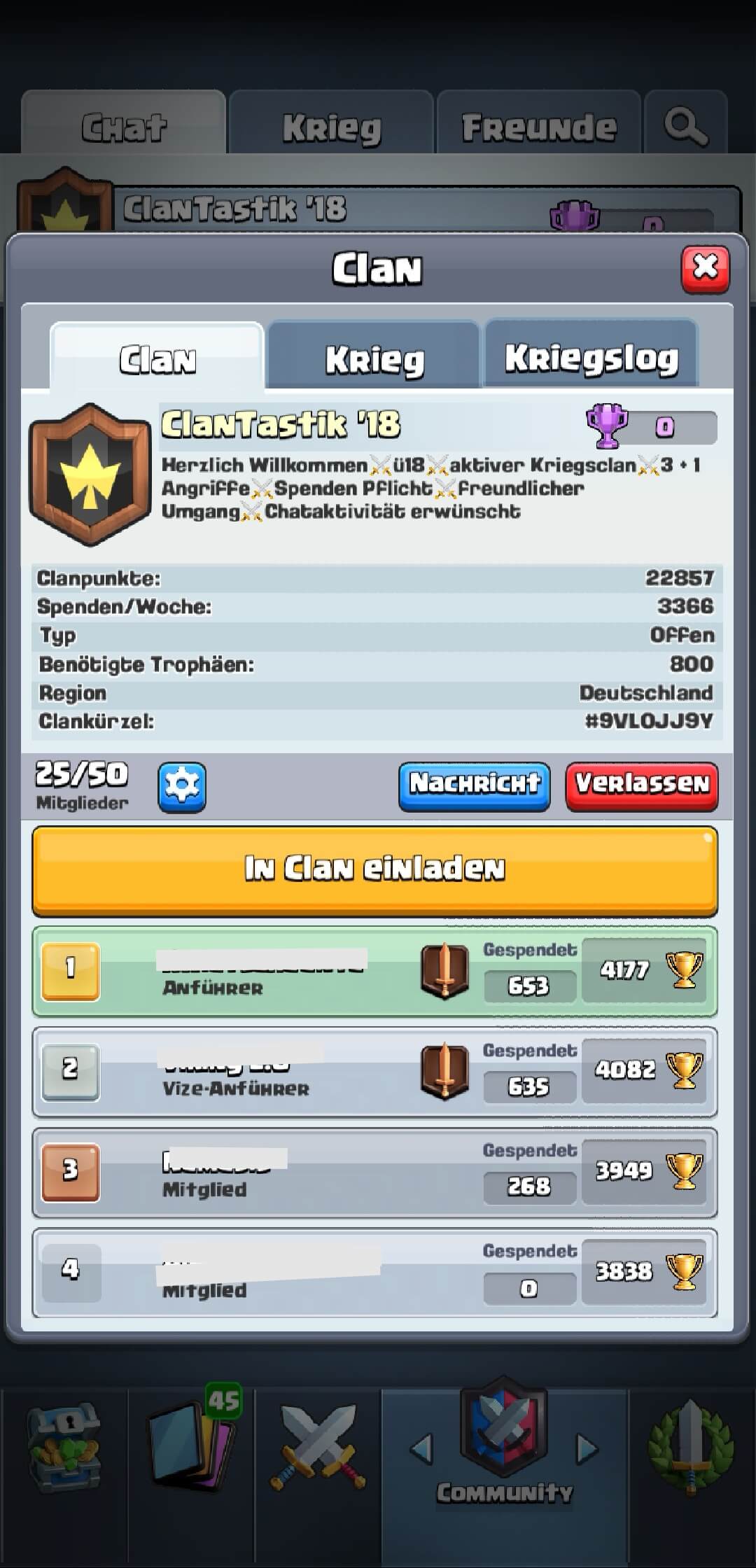 - In Clash of Clans Leader eines Level 16 Clans (#PJ8QOOQJ) => zuverlässig