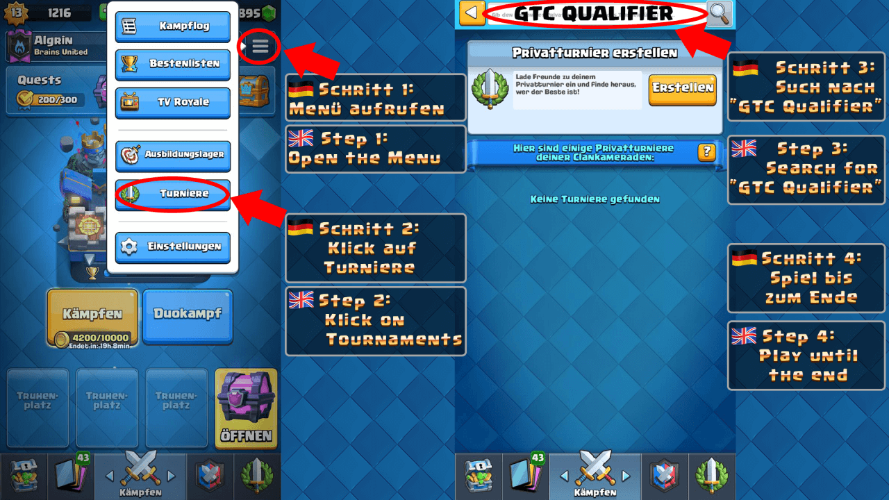 Auf meinem Discord-Server im Raum "global-tournament-challenge" findet ihr eine genau Erklärung wie das ganze Abläuft.