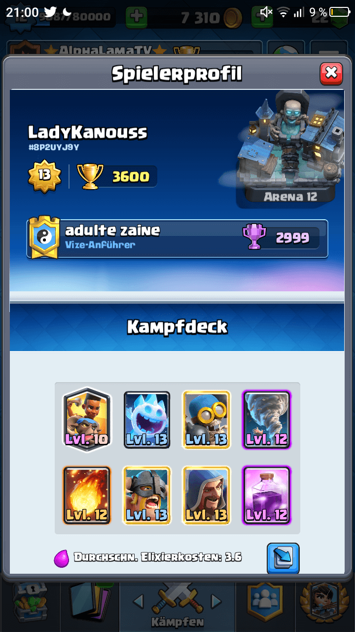 Ich habe gerade mit einem Freund einen Duo Kampf gemacht. Dort habe ich gesehen, dass der eine viele Level 13 Karten hat, was für mich ziemlich komisch scheint. Also habe ich in den Kampflog geschaut und bin fast umgefallen vor Erstaunen.