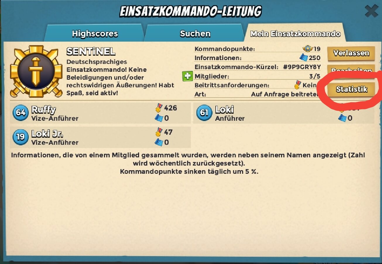 Eine Clankriegsstatistik wäre hilfreich: 6