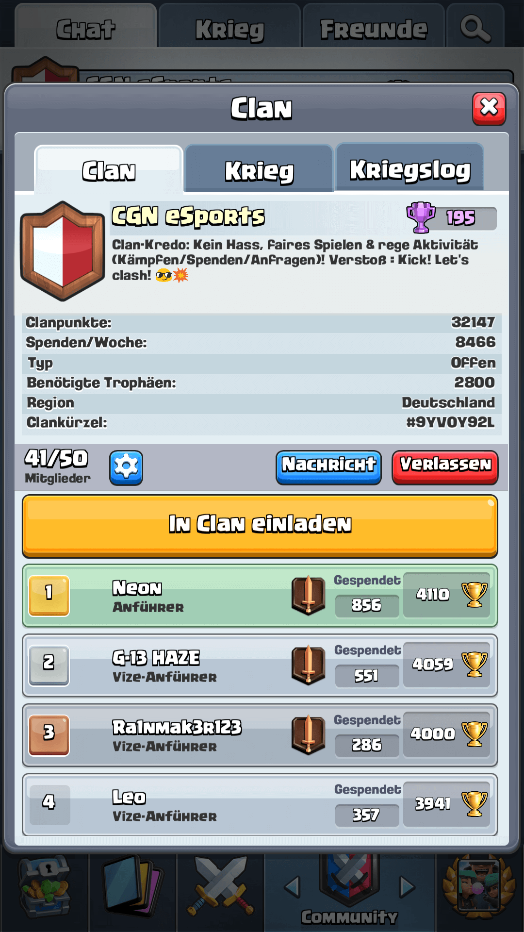 KARTEN SPENDEN (#YUGQCLU) veranstaltet einen Clankrieg nach dem anderen und sucht Mitglieder, die WIRKLICH mitmachen, also immer alle 3 Vorbereitungskämpfe UND den Finalkampf machen.