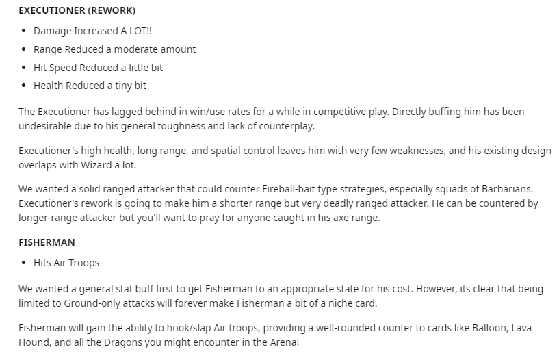 Auf Reddit ist jetzt über den Offiziellen CR Kanal gepostet worden, dass der Henker komplett überarbeitet wird und der Fischermann wird fliegende Einheiten angreifen können.