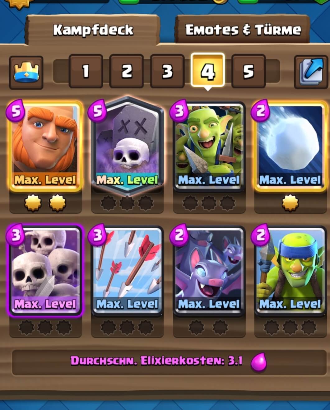 2. Mit Ritter statt Dunkler Prinz. (Der Dunkle Prinz ist wegen der aktuell starken Hexe drin. Da kann man aktuell sicher auch Walküre nutzen oder auch noch den Eisgolem)