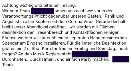 Bei uns im Kreis war es so, das angeblich zwei Corona Verdachtsfälle waren, sofort wurde dramatisiert und gesagt zwei Coronafälle im Kreis. Nach zwei Stunden wurde es direkt wieder dementiert.