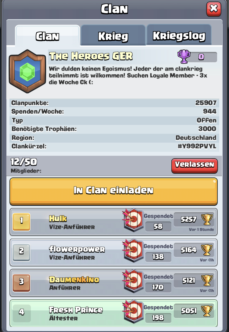 wir The Heroes GER sind ein junger Clan im Aufbau und wurden erst gestern gegründet!