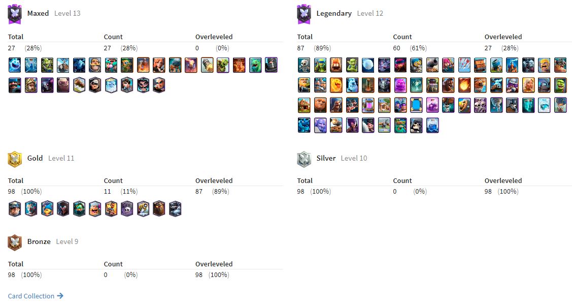 Karten: 87 von 98 Karten auf mindestens Level 12 -> von den 11 Karten, die noch Level 11 sind, sind dies ausschließlich Legendäre