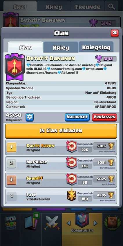 Ich bin sicher kein top Spieler und möchte auch keinen top Clan, aber ich habe einfach keine Lust mehr auf Spieler die nur jeden 4. Krieg etwas zustande bringen und trotzdem keine Tipps entgegen nehmen. Ich möchte mein Deck zusammen planen können und mit anderen zusammen üben die mir noch etwas beibringen können.