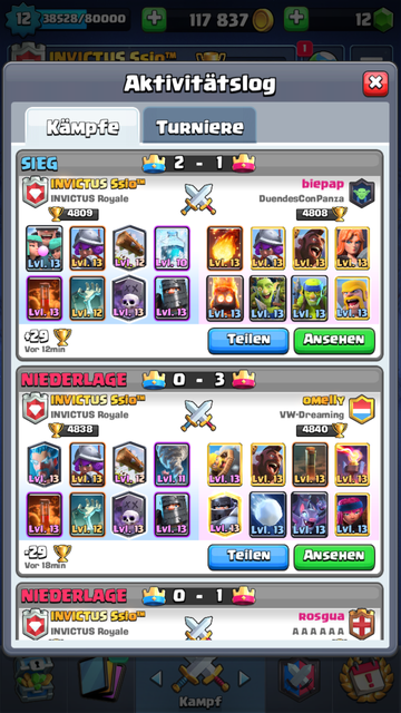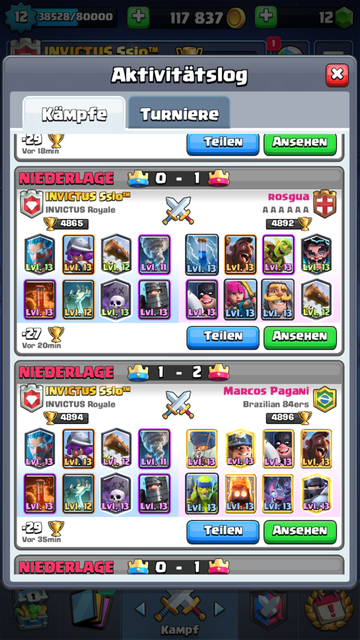 Gerade 6 Spiele Gemacht: 3 x Mal Mega Pekka, 2 x Mal Ballon mit Holzfäller, einmal nen Random Deck. Was soll ich dazu sagen?! Das es lustig ist, ständig gegen gleiche Kombis und Co zu spielen, weil einfach gar keine Vielfalt mehr in diesem Spiel stattfindet?! SC steuert eben für sich dieses Spiel um es einfach für sich so geldfähig zu machen, wie möglich.