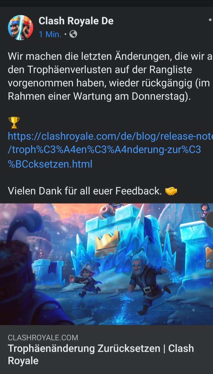 E) von unten wird auch nicht viel kommen, wenn du z.B. bei knapp über 4.000 mit Königslevel 8 gegen Königslevel 11 spielst, welcher sogar auf 12 gelevelte Karten hat. Das nimmt jede Motivation, Ist aber nur möglich, weil es viel viel zu wenig Spieler gibt im Vergleich zu früher um das ausgeglichen zu halten