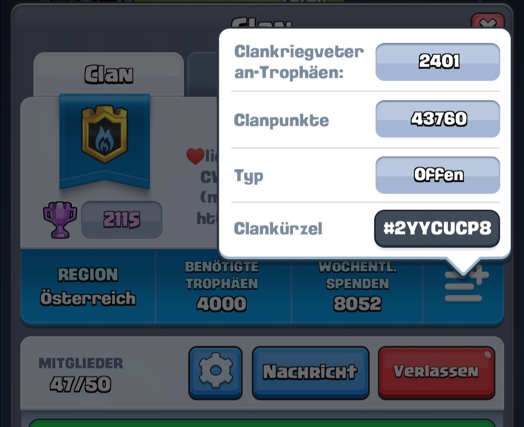 Mein Clan befindet sich mit 1050 Punkten in der Silberliga. Bisher hatten wir keine Probleme die 1st zu werden, Woche für Woche. Beim Kolluseum haben wir bewusst nach abgreifen der 1st Truhe aufgehört um in der Woche darauf nicht all zu starke Clans als Konkurenz zu bekommen. Alles war super. 19.000 am ersten Tag, doch jetz hörten einige auf bzw. lassen es schleifen, weil die Teilnahme verpflichtend ist und man nicht mal aussetzen kann. Daraufhin sind einige abgehauen. Jetz läuft es nicht gut. Wir sind 30 Mitglieder die noch Kämpfen und ein aktives Zuhause bieten. Ansonsten suchen wir bald ein Zuhause.