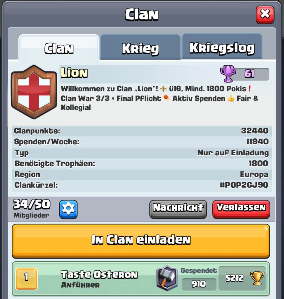 Derzeit 42/50 - sehr aktiver Clan.