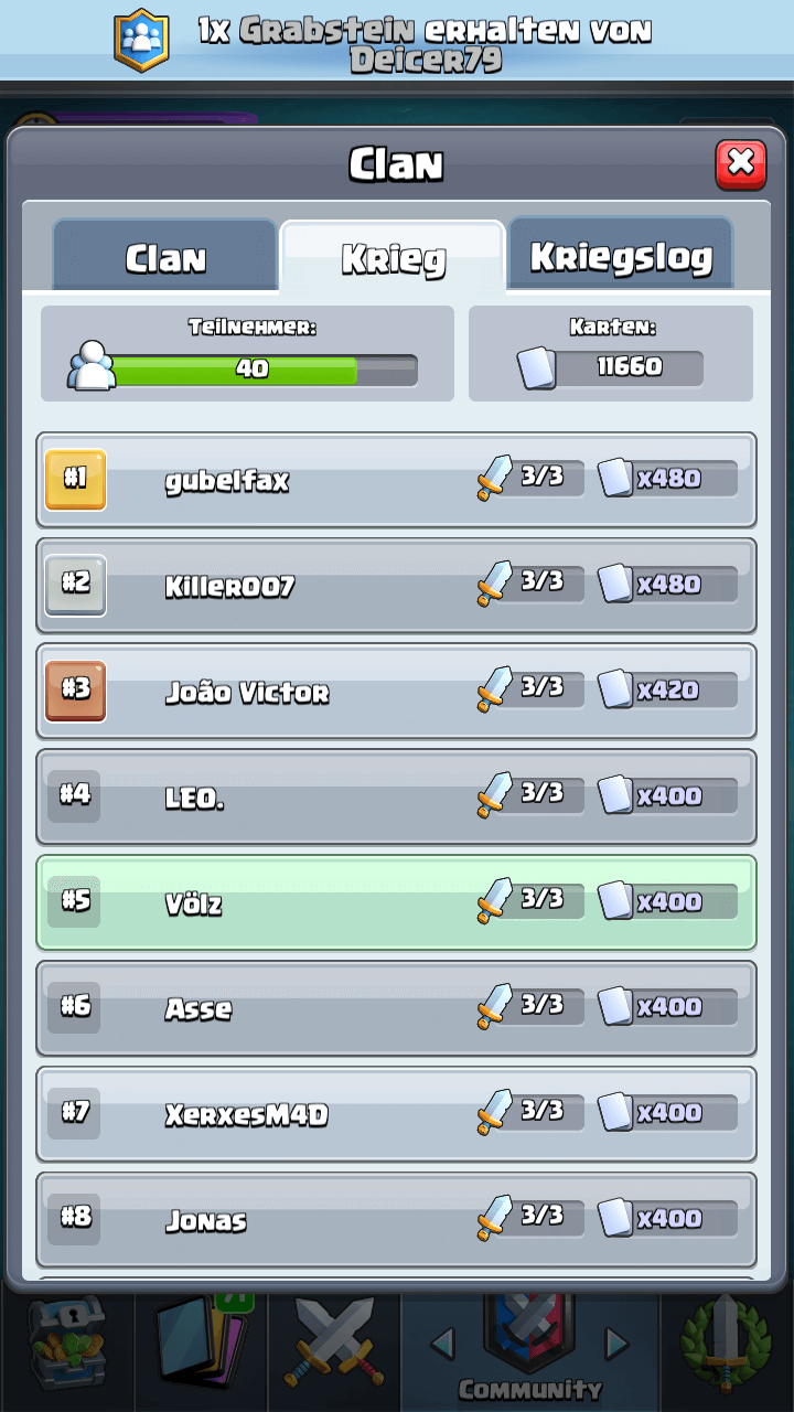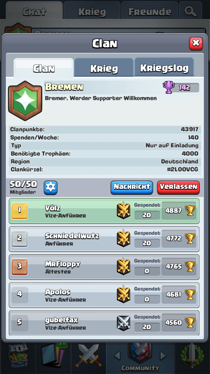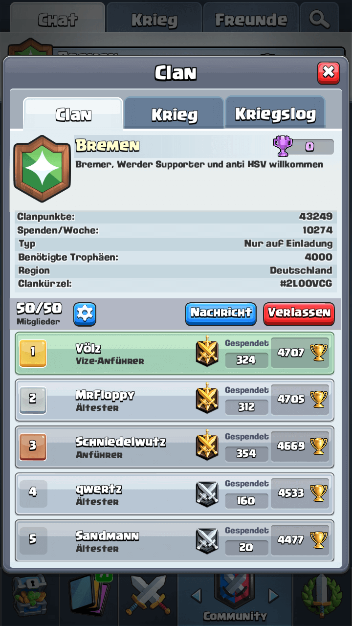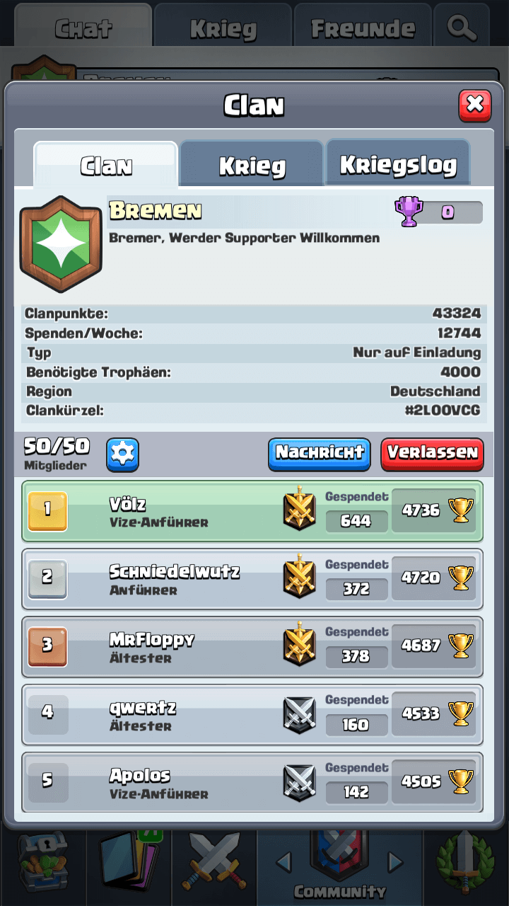 du bist übers Wochenende wahrscheinlich schon untergekommen. Falls nicht, würden wir uns sehr freuen wenn du dich für unseren Clan (aktuell 43. 932 Trophäen) entscheidest