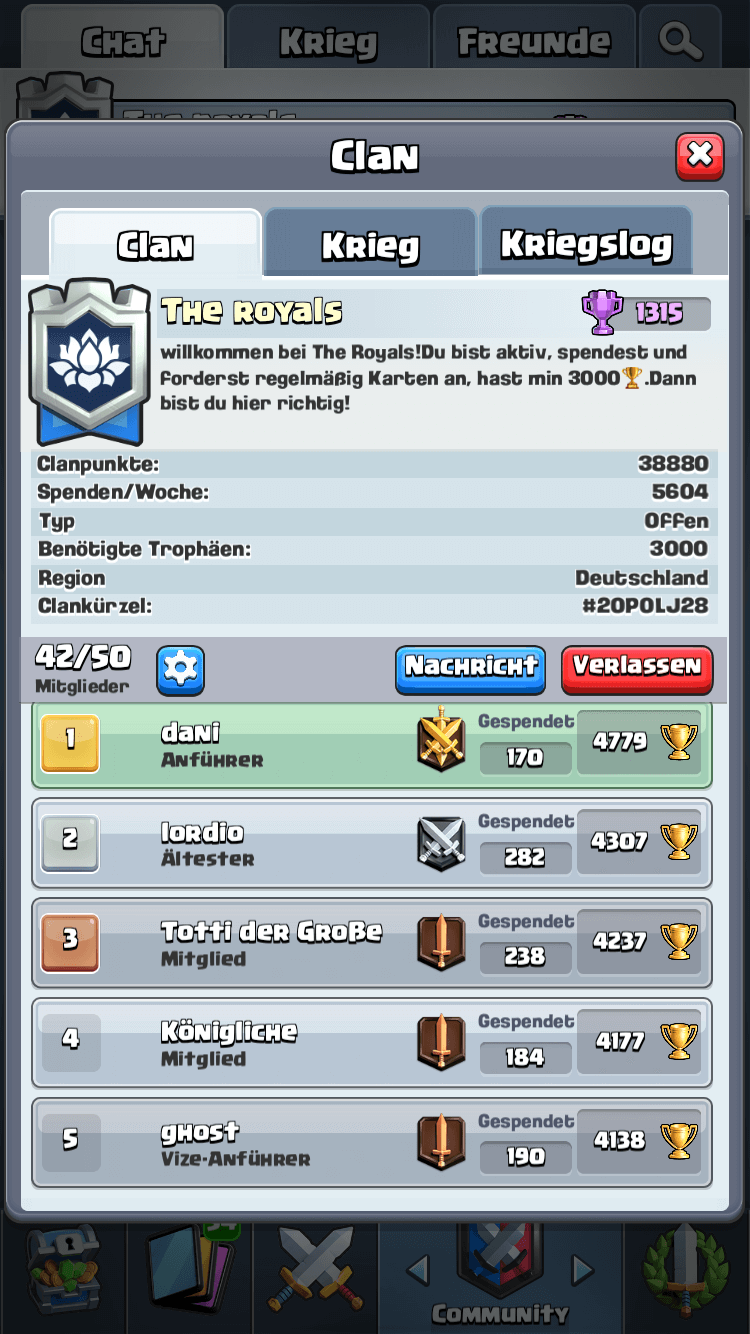 Ihr solltet aktiv sein und regelmäßig an Kriege teilnehmen. Unser Ziel ist es Gold zu erreichen. Ältester wird man nach sehr hoher Altivität und Vize nach Vertrauen.