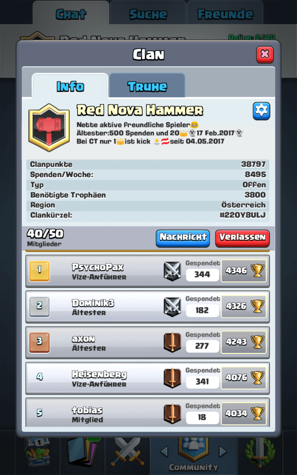 Wir sind ein Österreich Clan den es seit Februar. 2017 gibt.Top 200 AT seit Mai 2017.