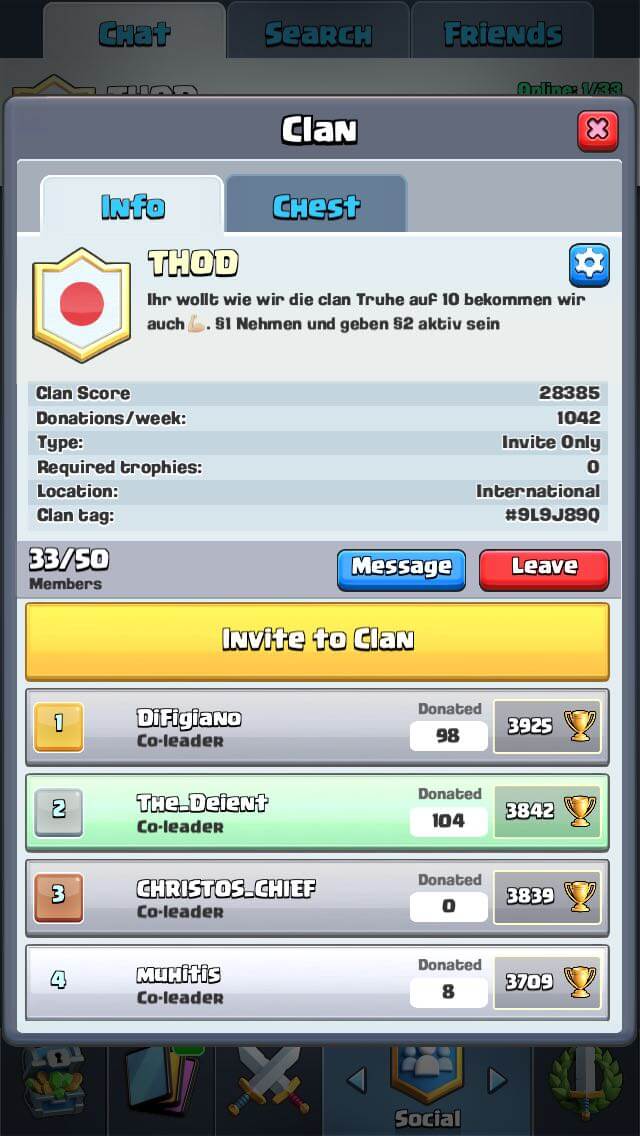 Wir haben keine Trophäenbeschränkung alle Spieler jeglichen Levels können uns beitreten. Wir sind auch gerne bereit Leute die noch nicht so lange spielen oder nach Decks suchen diese zu unterstützen, indem wir ihnen Decks vorschlagen und diese dann mit ihnen trainieren!