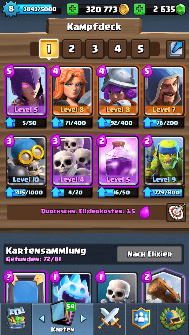 Ich glaube wenn man nicht einer der Glücklichen war , der bei zeitnahen Release damals dabei gewesen ist, so ist man prinzipiell immer ein oder mehrere Schritte dahinter je nach Einstieg in CR. Das Spielprinzip dreht sich um Trophäen, auf dieser Basis werden Gegner gesucht und ein klein wenig auf der Basis des jeweiligen Decks (nicht zuvergessen das es auch absolute Gegendecks gibt).