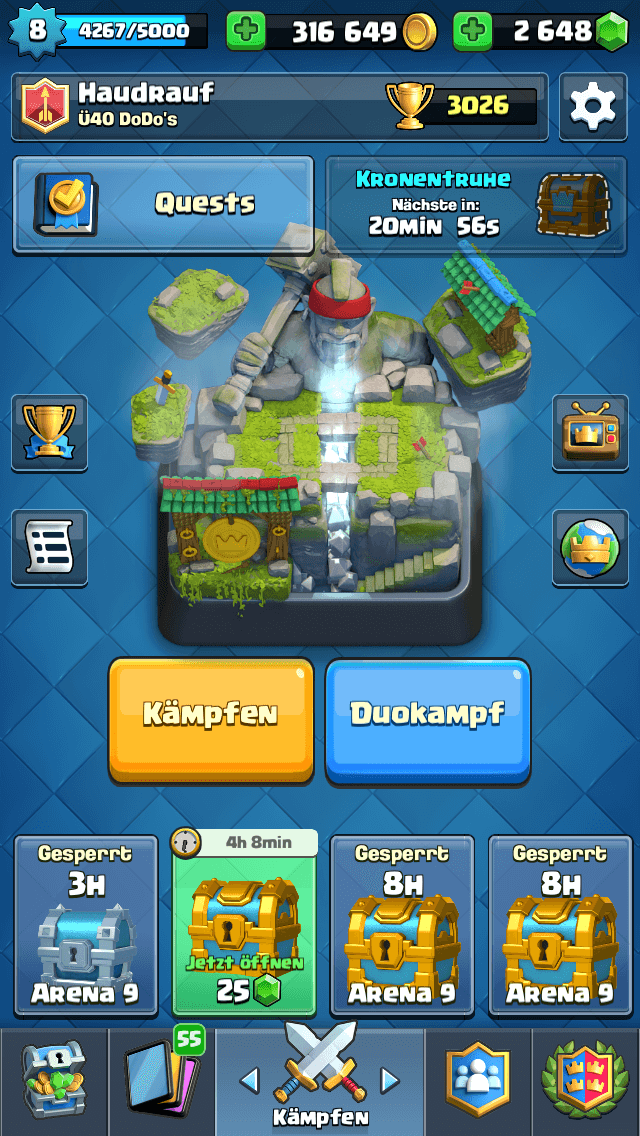Das Spielziel sind Arenen und schlussendlich der Ultimativen Champions anzugehören🙃 Grundsätzlich stößt man an seine ganz persönliche Grenze des Kartenup+Deckauswahl vs. Trophäen.