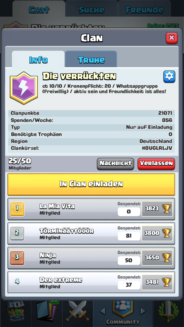Also im CR einfach bei clanbeschreibung unauffällig anmerken das ich weiblich bin? XD das klingt interessant ob das hilft mal schauen^^