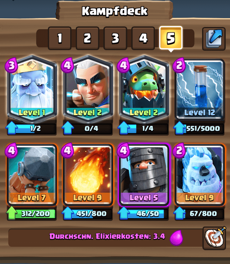 Das heißt nicht, dass wird das Feedback von Spielern anderer Trophäenlevel nicht hören. Königsriese und Elitebarbaren sind sehr wohl auf unserem Schirm, nur ist es schwierig sie stark zu nerfen, weil es eben das Überleveln macht was die Karten so stark macht. Wenn wir ausschließlich auf den Turnierstandard oder die obersten Ligen schauen würden, müssten diese Karten sogar gestärkt werden. Keine Panik! Nur in der Theorie